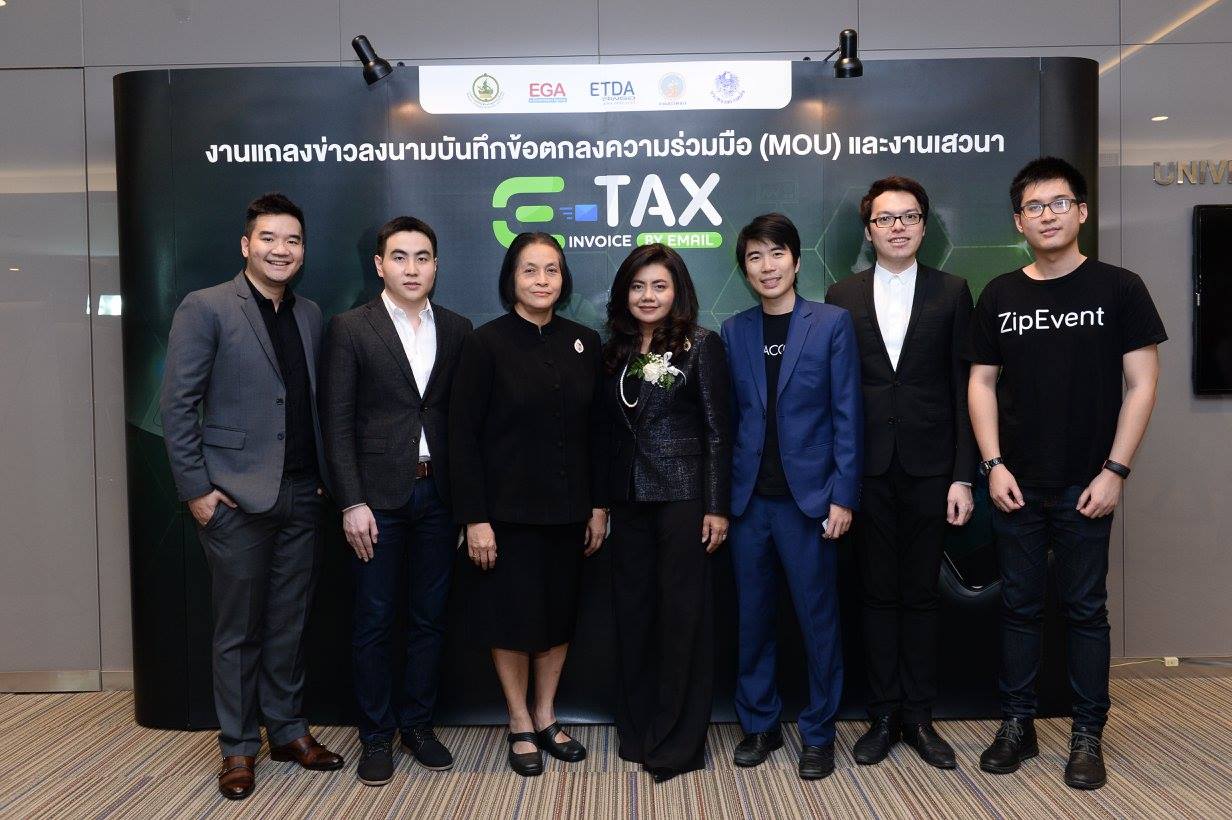 รายละเอียด: สำนักงานพัฒนาธุรกรรมทางอิเล็กทรอนิกส์ (องค์การมหาชน) (สพธอ.) หรือ ETDA (เอ็ตด้า), กระทรวงดิจิทัลเพื่อเศรษฐกิจและสังคม ในฐานะหน่วยงานซึ่งมีหน้าที่ในการผลักดันและส่งเสริมการทำธุรกรรมทางอิเล็กทรอนิกส์ ได้จัดทำโครงการจัดส่งใบกำกับภาษีอิเล็กทรอนิกส์แห่งชาติ (National e-Payment) โดยมีกิจกรรมการส่งเสริมให้ผู้ประกอบการมีการใช้ใบกำกับภาษีอิเล็กทรอนิกส์มากขึ้น โดยส่งใบกำกับภาษีทางอีเมล์ไปยังผู้ให้บริการประทับเวลาทางอิเล็กทรอนิกส์ (Timestamp) เพื่อประทับเวลาที่มีการส่งอีเมล์แนบใบกำกับภาษีอิเล็กทรอนิกส์ และส่งใบกำกับภาษีพร้อมข้อมูล Timestamp กลับไปยังผู้ซื้อ สำหรับกรมสรรพากรใช้สืบค้นและตรวจสอบต่อไป เอ็ตด้า (ETDA) จึงจัดงานแถลงข่าวให้กับ ผู้ประกอบการทั่วไป หรือผู้ที่สนใจ โดยมี ดร.พิเชฐ ดุรงคเวโรจน์ รัฐมนตรีว่าการกระทรวงดิจิทัลเพื่อเศรษฐกิจและสังคม ให้เกียรติเป็นประธานจัดงานในครั้งนี้ พร้อมทั้งจัดสัมมนาหัวข้อ “การบริการจัดส่งใบกำกับภาษีอิเล็กทรอนิกส์ทางอีเมล (e-Tax invoice) โดยเป็นการลงนามบันทึกข้อตกลงความร่วมมือ (MOU) โครงการ e- Tax Invoice by Email ระหว่างกรมสรรพากร, สำนักงานพัฒนาธุรกรรมทางอิเล็กทรอนิกส์ (องค์การมหาชน) และสำนักงานรัฐบาลอิเล็กทรอนิกส์ (องค์การมหาชน) เพื่อเดินเครื่องผลักดันนวัตกรรมใหม่ๆเข้าสู่ระบบการจัดส่งใบกำกับภาษี เข้าสู่ไทยแลนด์ 4.0 อย่างเต็มรูปแบบ พร้อมด้วยวิทยากร หรือผู้เชี่ยวชาญทางด้านภาษีร่วมเวที อาทิ คุณนงพงา บุญเปี่ยม ผู้อำนวยการสำนักงานบริหารการเสียภาษีทางอิเล็กทรอนิกส์, ดร.ยุทธนา ศรีสวัสดิ์ อาจารย์ประจำคณะนิติศาสตร์ มหาวิทยาลัยสยาม และผู้ร่วมก่อตั้ง iTAX และ คุณถนอม เกตุเอม ผู้ก่อตั้ง Taxbugnorms